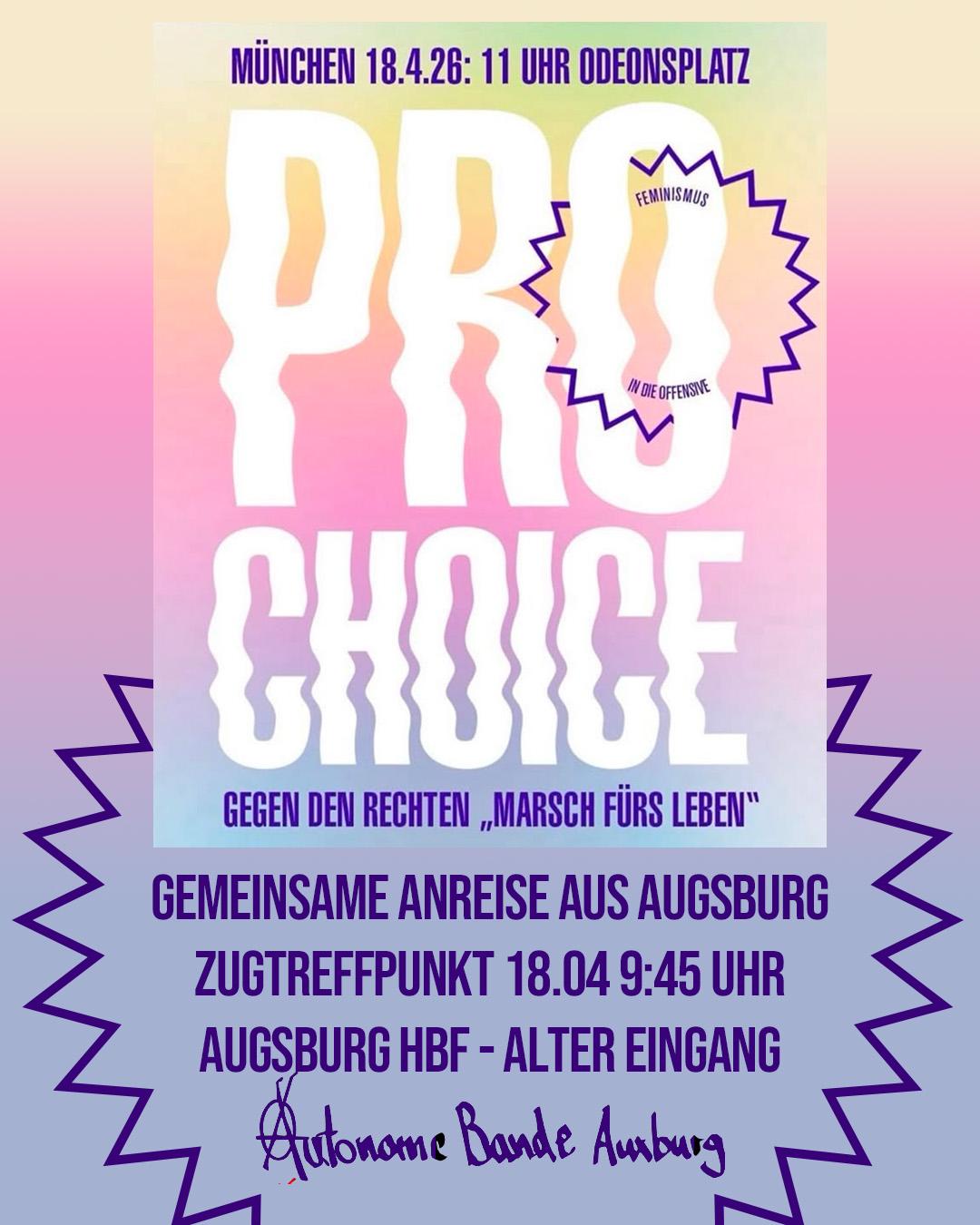 Augsburg HauptbahnhofFür den 18.April ist erneut ein "Marsch fürs Leben" in München geplant.Einmal im Jahr ziehen radikale Abtreibungsgegner*innen aus dem gesamten deutschsprachigen Raum durch die Stadt um ihre antifeministische Agenda in die Öffentlichkeit zu tragen.Der Marsch ist eines der größten Events dieser Szene und ein wichtiger Ort rechter Vernetzung.Wir werden Teil des Gegenprotests sein um zusammen...